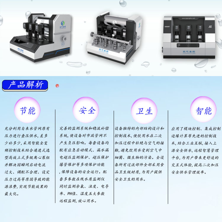 2、由于產品不斷更好改進,如有新的功能,難以及時通知,請諒解,如須了解詳細內容或其它信息,請與巨忠技術中心成套供水設計所聯系。