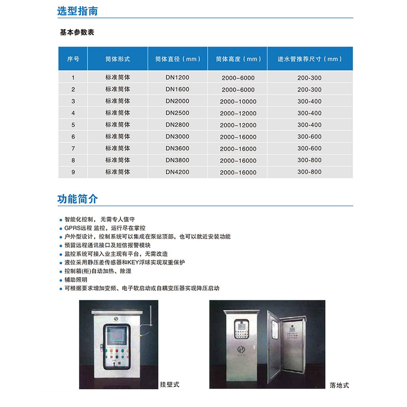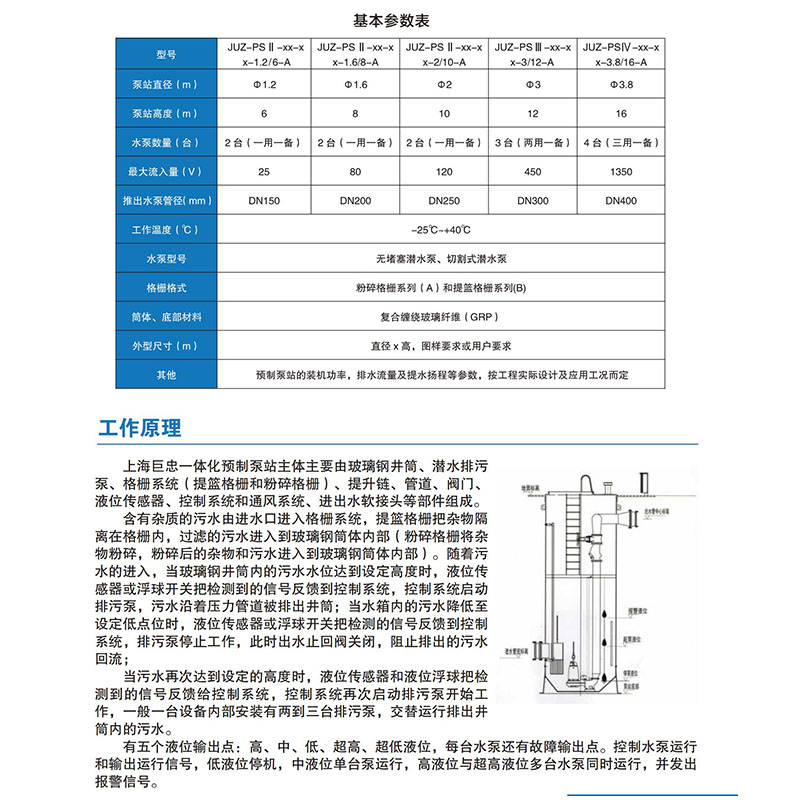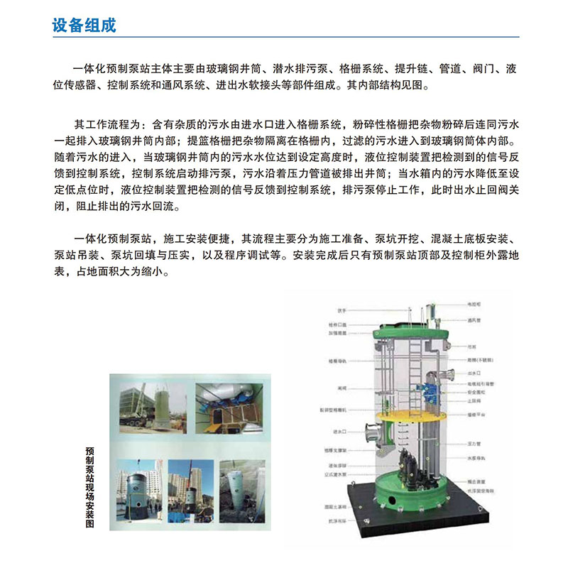 每套預制泵站內部都至少有兩套液位控制系統,浮球一同與液位計系統,日常工作時,浮球系統控制水泵的啟停,方浮球系統出現故障時,控制系統自動切換到投入式液位計控制系統控制誰啟停,保障泵站的正常使用。